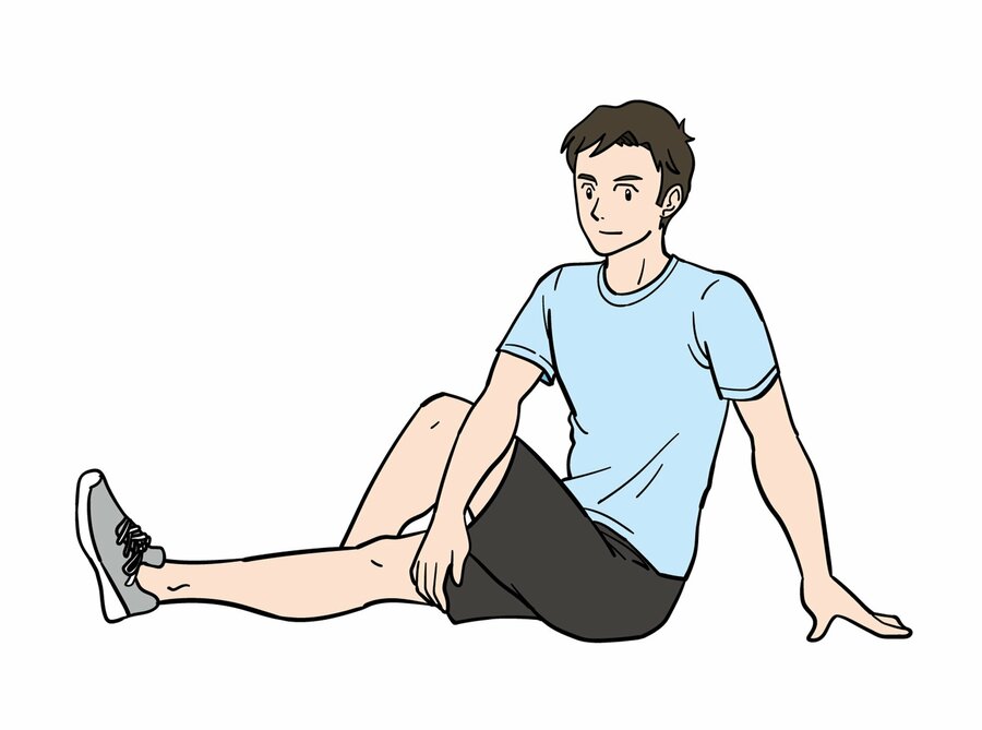 ②片方の足を曲げて、伸ばした足の外側に置く。