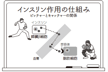 A: ピッチャーがきちんと投げる、キャッチャーがきちんと捕まえる、どちらか片方でも不足するとインスリンの働きが悪くなりますね。