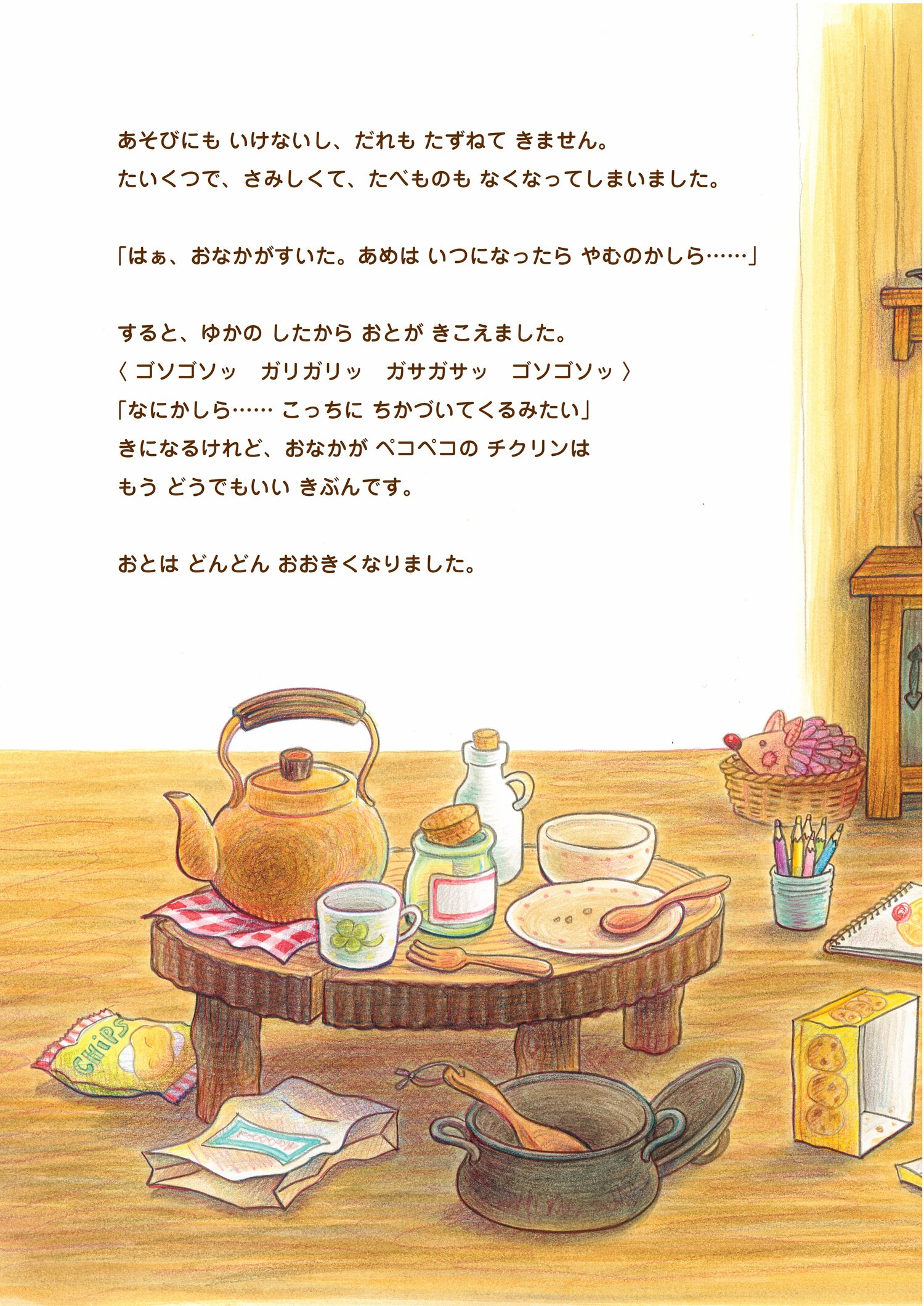 絵本・漫画 絵本 児童書 動物 2025.07.20 森にすむハリネズミのチクリン。ひとり退屈していると、「ゴソゴソッ」と床から音が... 👉『チクリン、ちかがいにいく』連載記事一覧はこちら 【イチオシ記事】自分が不倫をしているんだという自覚はほとんどなかった。 【注目記事】初産で死にかけた私――産褥弛緩を起こし分娩台で黒い布を顔に被され電気も消され5時間ほどそのままの状態に