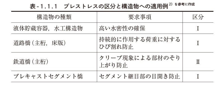 最近では,表-1.1.1の考え方により,適切なプレストレスが求められている.