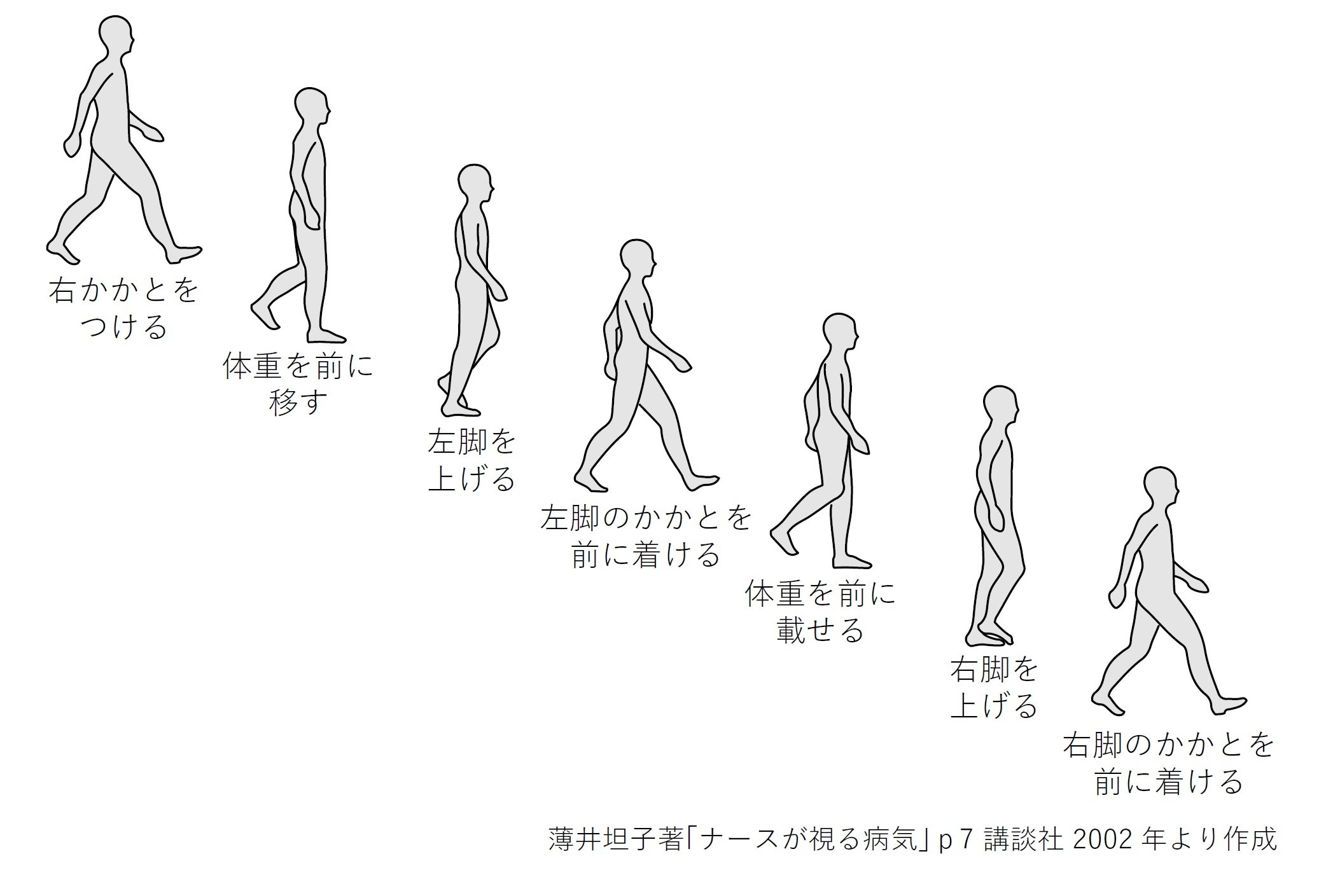 7-8時間の睡眠と運動・労働に加え膝関節歩行ではなく、図1のように歩き始める幼児期から大腿骨から歩く方法(=骨盤と同じ幅に両足で起立し、歩行時は、先ず進めた片足の踵を土につけてから足先を土につけ、もう一方の片足の踵を土に進めるという動きを繰り返して歩く)を習慣化(=日常化)して血流を促進し、脳への循環機能を高める必要があります。
