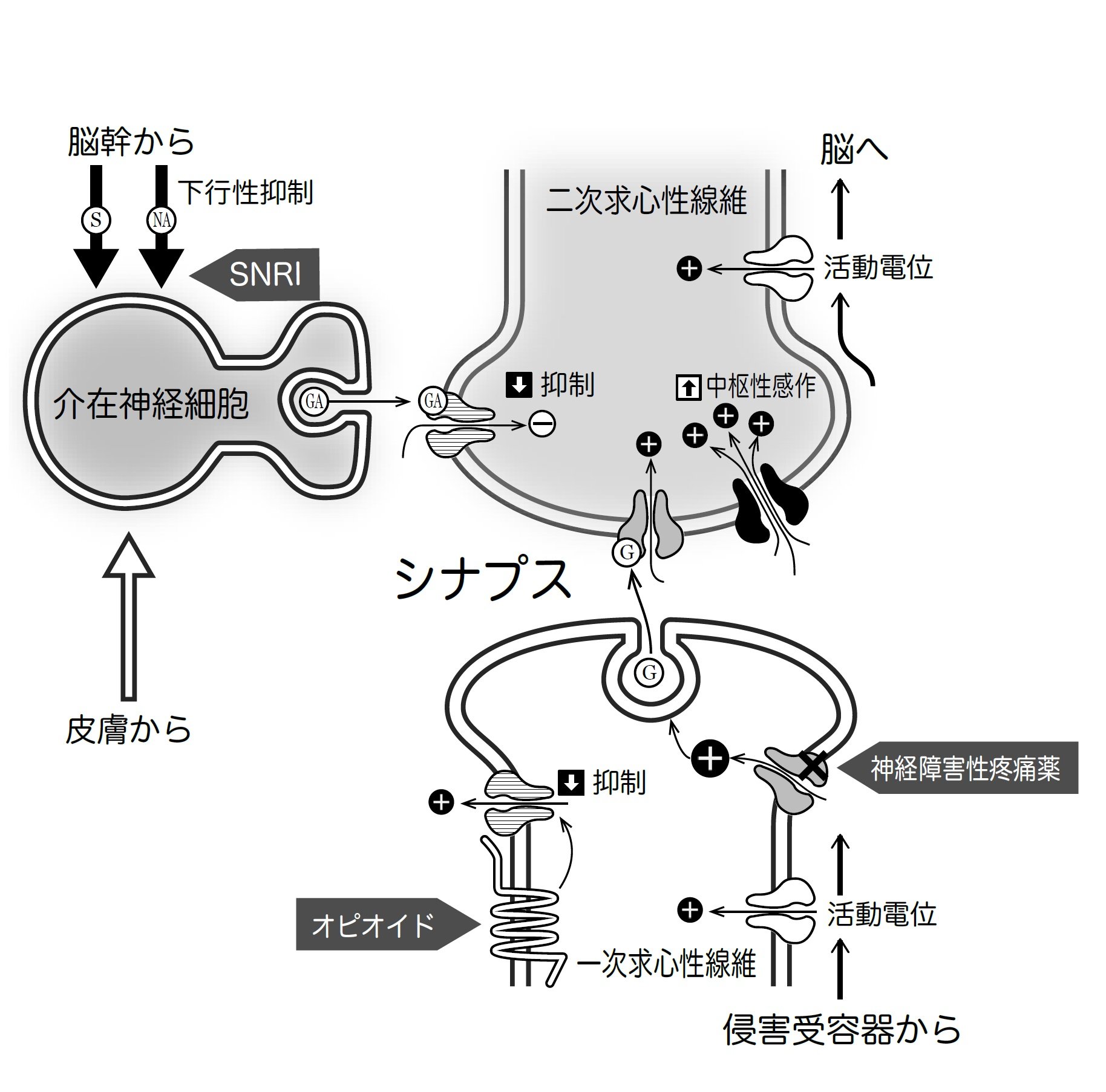 視床外側部で処理された侵害感覚は大脳皮質に送られます。