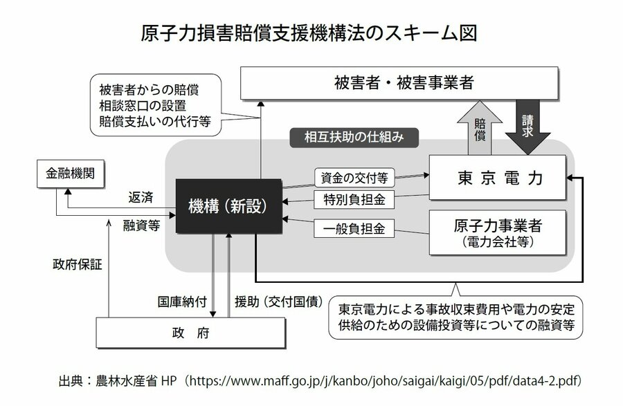 このような政府の「援助」のスキームは、原子力損害賠償法が被害住民等の補償のために原子力事業者に「無過失責任」を負担させることによって損害賠償させ、これを国が「援助」するという仕組みを大きく変容させ、以下の通り、同法の趣旨を逸脱し、同法に違反している疑いが濃厚である。