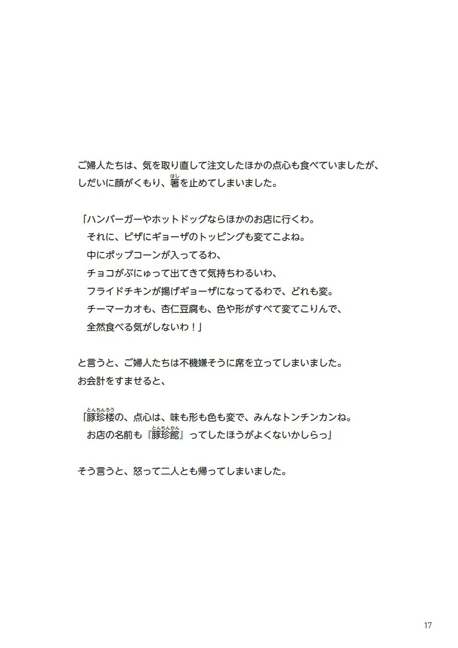 【絵本】「あれと、これと」と新しいアメリカンスタイルの飲茶の点心を注文したご婦人たちは怒ってかえってしまい…