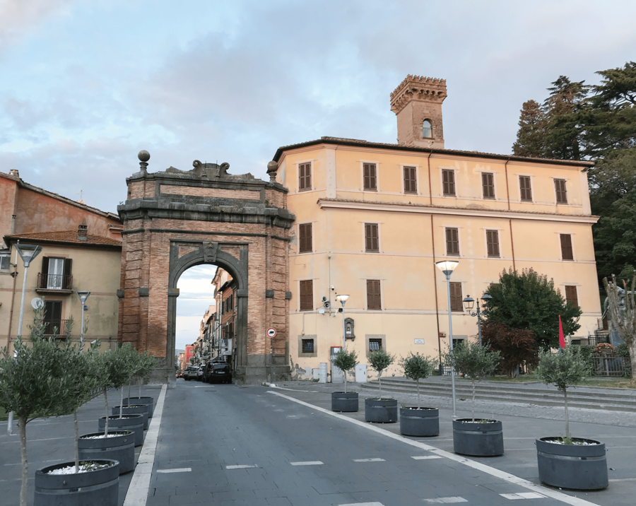 ようやく辿り着いたカンパニャーノ・ディ・ローマは、フォルメッロよりも大きな街で、旧市街入口の門もなかなか立派である。
