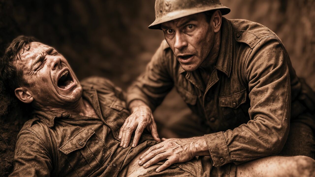 映画のなかで、フランスの一小隊が、ある村の偵察に出撃した際、隊員の一人が被弾し重傷を負って断末魔の悲鳴を上げるシーンがあったのです。