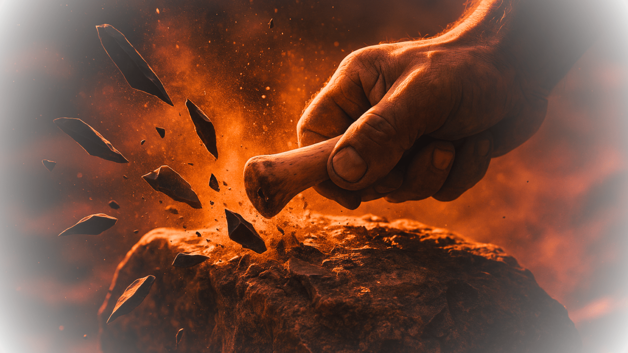 「赤ん坊の頭ほどの岩を石のハンマーで上からガツーンとやるね」
