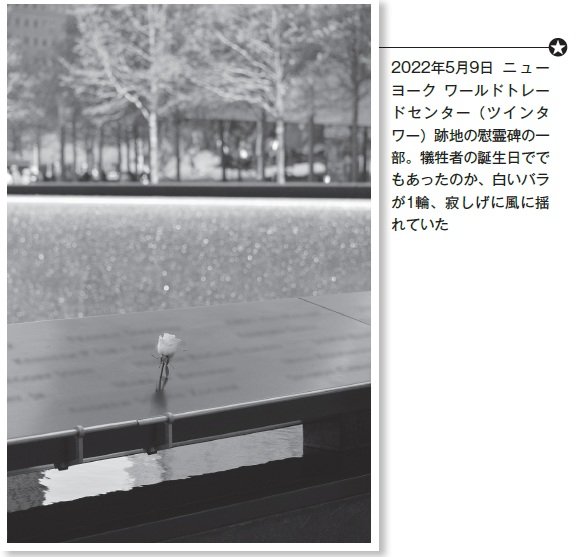 ニューヨークと言えば、忘れてならない思い出がある。そのう、9.11 話だ。 2001年9月11日。もう22年前になる。犠牲になられた方々のご冥福を心から祈る。この白いバラの花に込めた祈りが、筆者にも今もって熱く迫ってくる思いがする。当時は、この地にワールド・トレードセンタービルが空に向かって2本屹立していた。そのビルの上層階から2本の煙が立ち上っていた姿は、忘れ得ぬ情景だ。