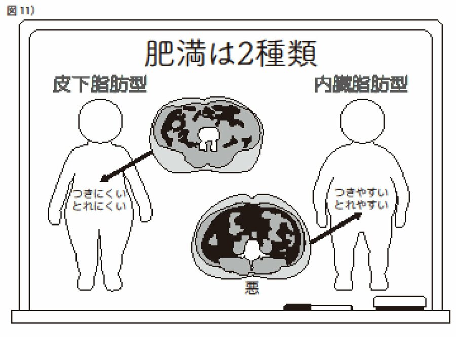M:あきさん、スマートに見えますけどね~。つまめるお肉が増えたということは、皮下脂肪が増えたことを意味しています。ちなみに、脂肪には皮下脂肪と内臓脂肪があるって知っていますか?(図11)