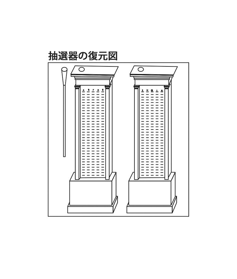 アテネの民主政の特徴は、専門家の役人や裁判員不在のシステムでした。アテネ市民は、こうした抽選器により平等に役人や裁判員に選出されました。