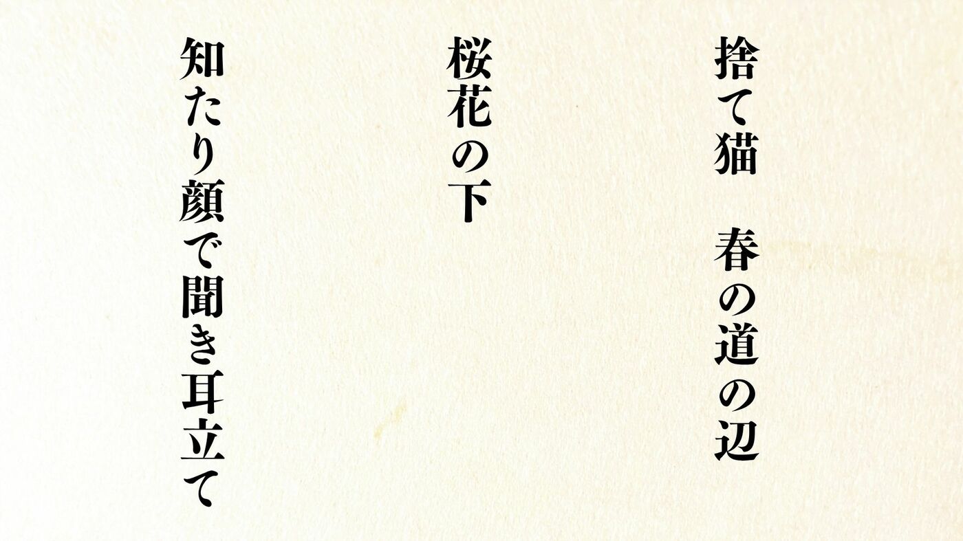 捨て猫(ねこ) 春の道の辺(べ) 桜花の下 知たり顔で聞き耳(みみ)立て