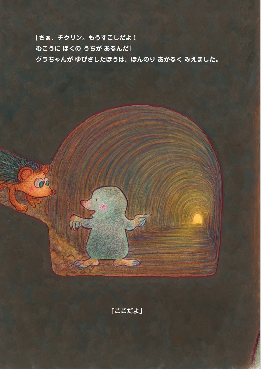絵本・漫画 絵本 児童書 動物 2025.10.28 「グラちゃん、ゆっくりすすんでね!」不安をかかえながらついていくチクリン。まっくらな穴を進んでいくと… 👉『チクリン、ちかがいにいく』連載記事一覧はこちら 【イチオシ記事】「私、初めてです。こんなに気持ちがいいって…」――彼の顔を見るのが恥ずかしい。顔が赤くなっているのが自分でも分かった 【注目記事】「奥さん、この二年あまりで三千万円近くになりますよ。こんなになるまで気がつかなかったんですか?」と警官に呆れられたが…