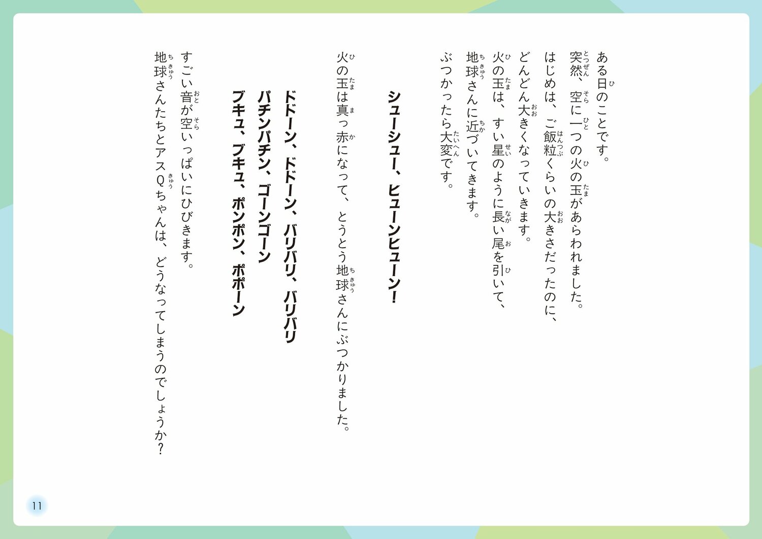 【前回記事を読む】子どもと学びたい!きれいな地球を守るための絵本|恐竜のアスQちゃんの平和な日常。地球さんと恐竜の楽しい時間が続いて…