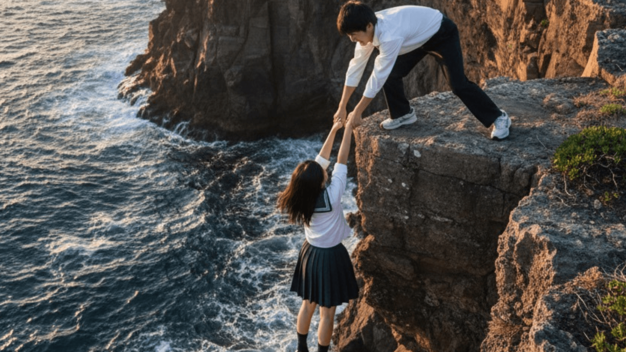 無理やり有希の手を掴(つか)み崖から離れる。有希と繋(つな)いでいる手に全神経を集中させる。思いに反して、有希は怖いほど素直に付いてきてくれる。死の淵(ふち)にいた有希の精神状態は見当もつかない。