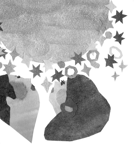 二人がまじまじと三つ星を見つめていると、なんとこんどは、いちばん小さな右はじの星が、ピカッ! と光り、そうしてくるくる回(まわ)りながら、こちらに向かってキューッンと飛(と)んでくるように見えたんだ。