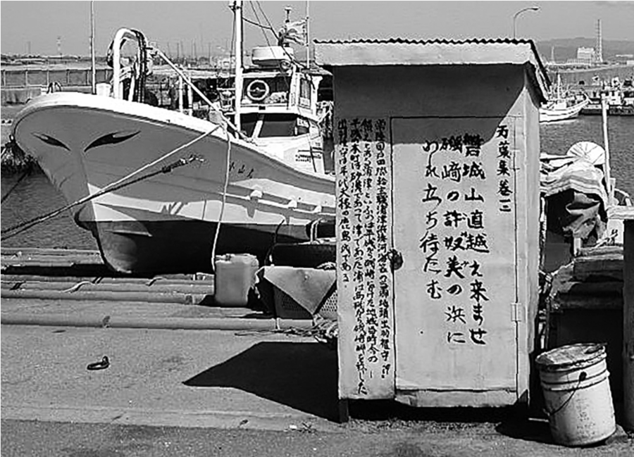 誰がどのような理由でこのような優雅なことを小屋の扉に書いたのだろうか。あたりには地元の人もいないので尋ねることもできない。万葉集に親しむ、風流な漁師がいるのだろうと想像した。