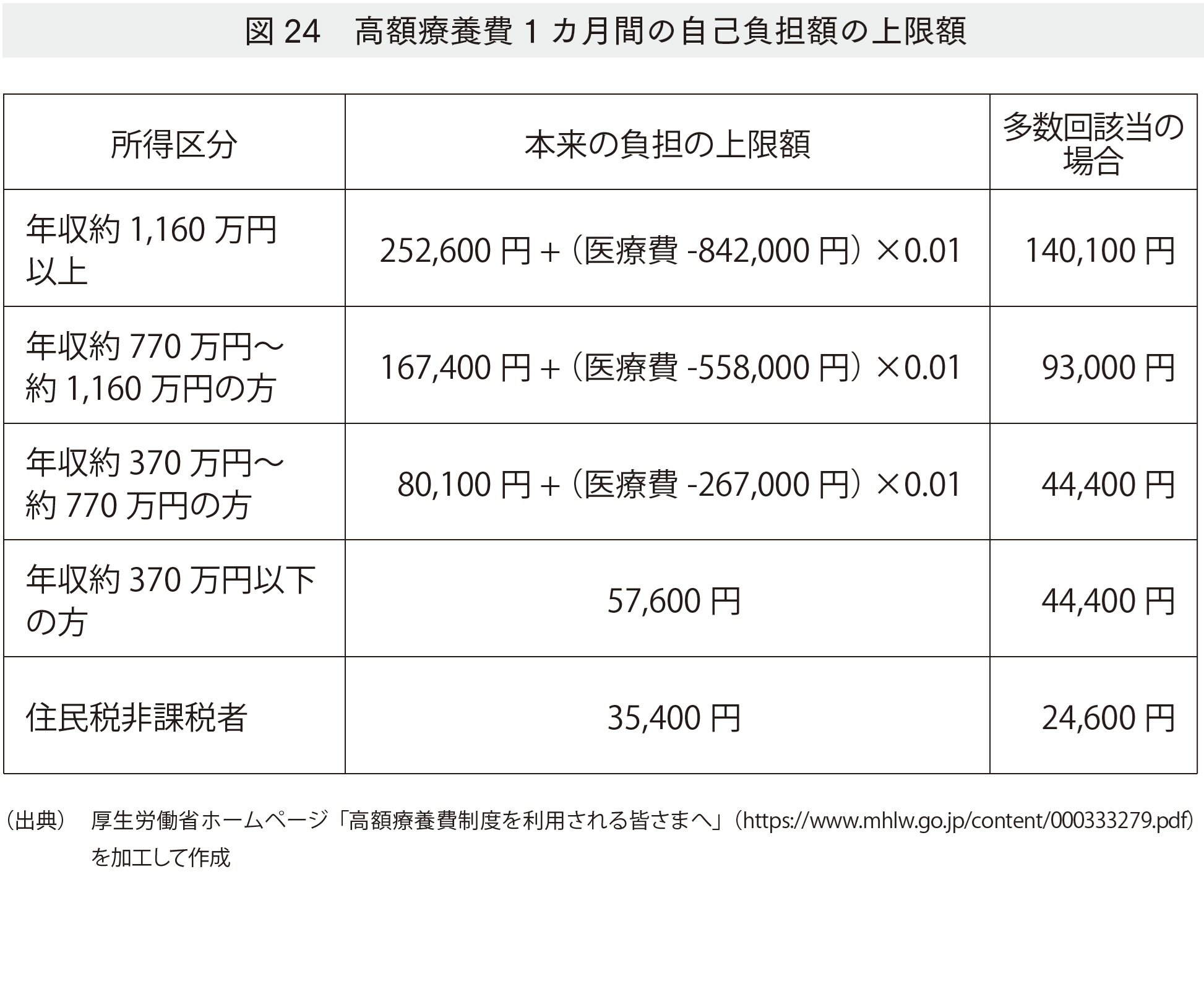 図24のように医療費が家計の過度な負担にならないように、限度額は所得水準によって決められています。