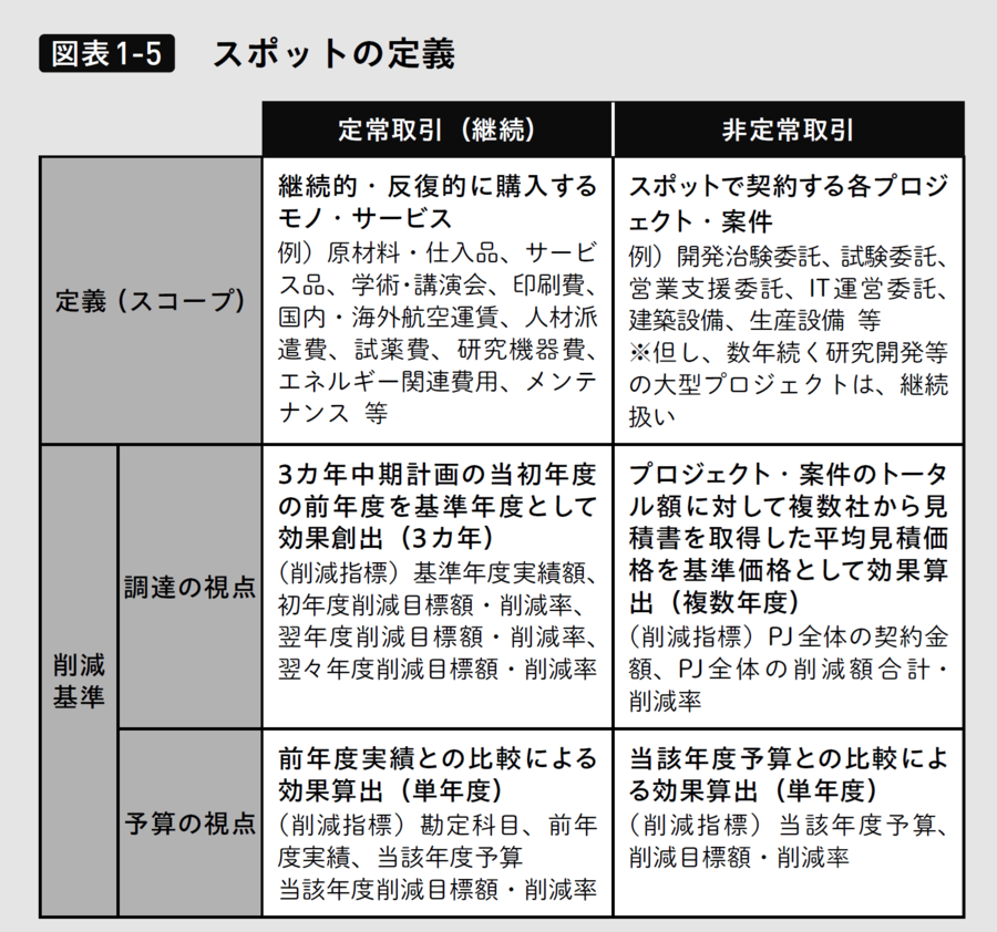 まずは、調達種類をスポット購入と継続購入に区分します。(図表1-5参照)