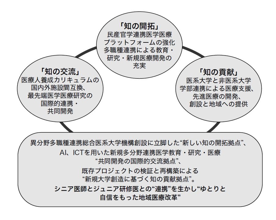 こういった問題点を改善し、改革するには、まず大学の使命である地域に根ざした医学教育、医師養成と医学研究さらには次世代型先進医療開発が必要である。