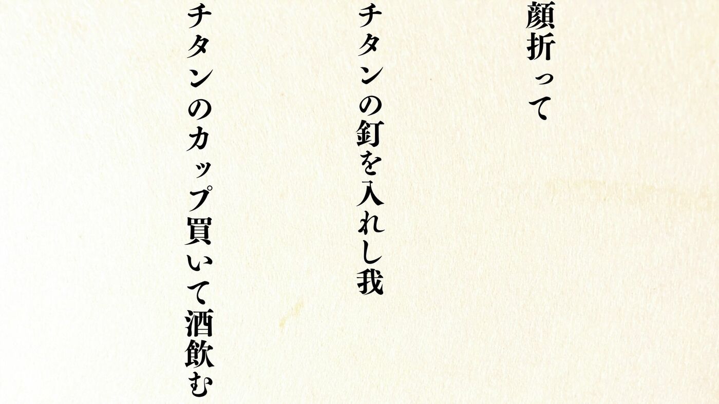 顔折って チタンの釘を入れし我 チタンのカップ買いて酒飲む