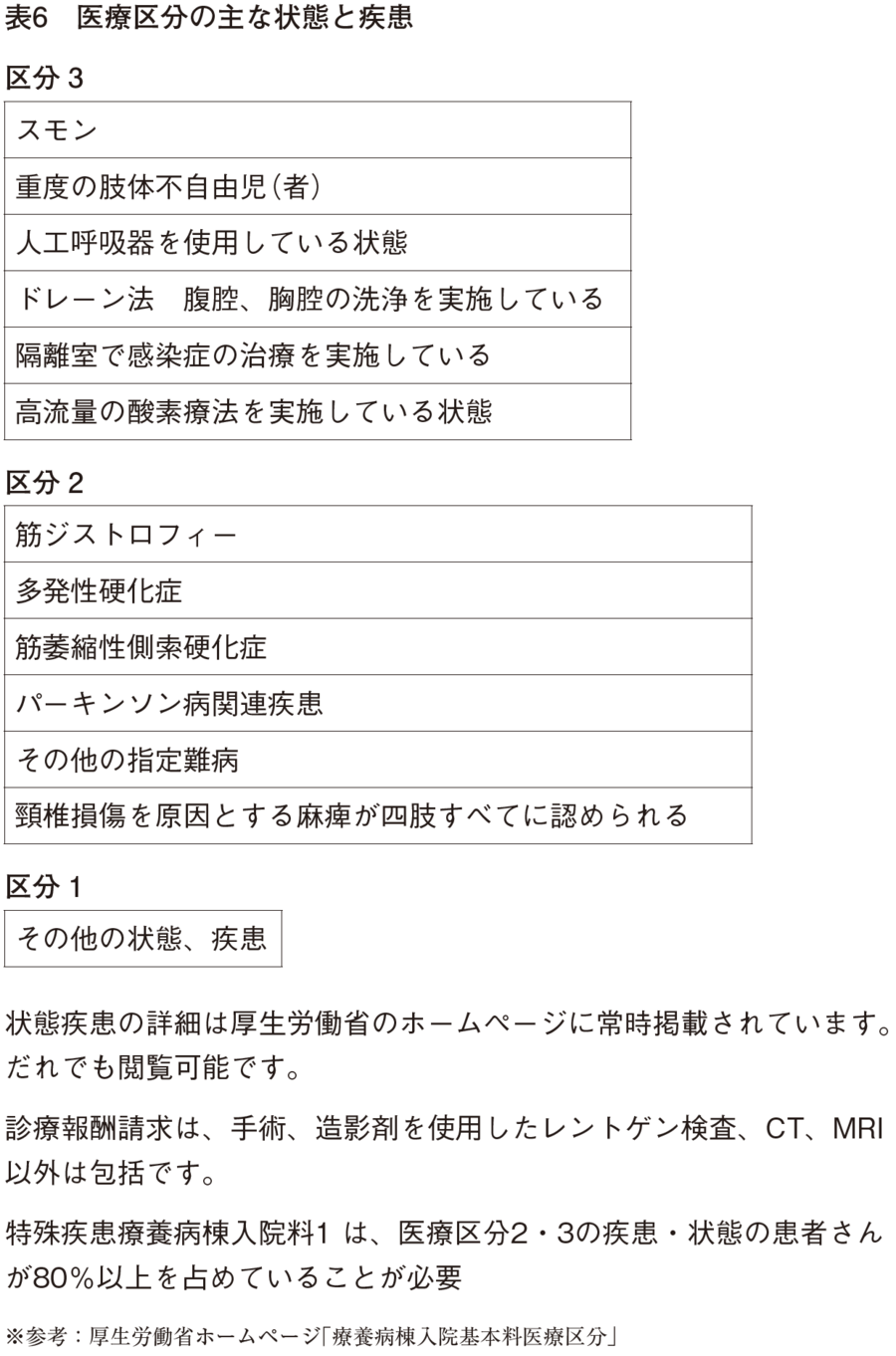 数年内に県内全域、県外からの紹介もいただけるようになっていった。二〇一二年に事務長になった白濱好美君も入塾させてもらい、先生方に前事務長が受けた研修後の取り組みで療養病棟として医療区分2・3(表6)の患者さんが95%以上で病床を運用していることを報告したところ褒められ喜ばれた。病院のイノベーションだったといえる。
