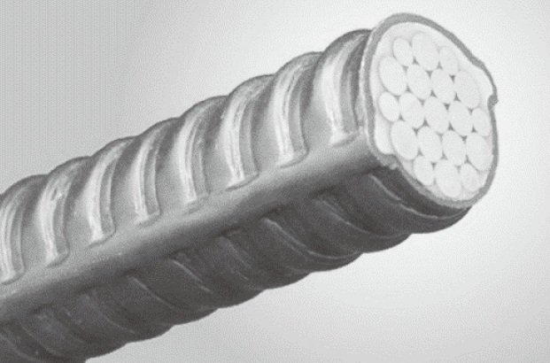 プレグラウトPC鋼材は,PC鋼材にエポキシ樹脂を塗布し,表面が凹凸状のPEシースで被覆した製品である.