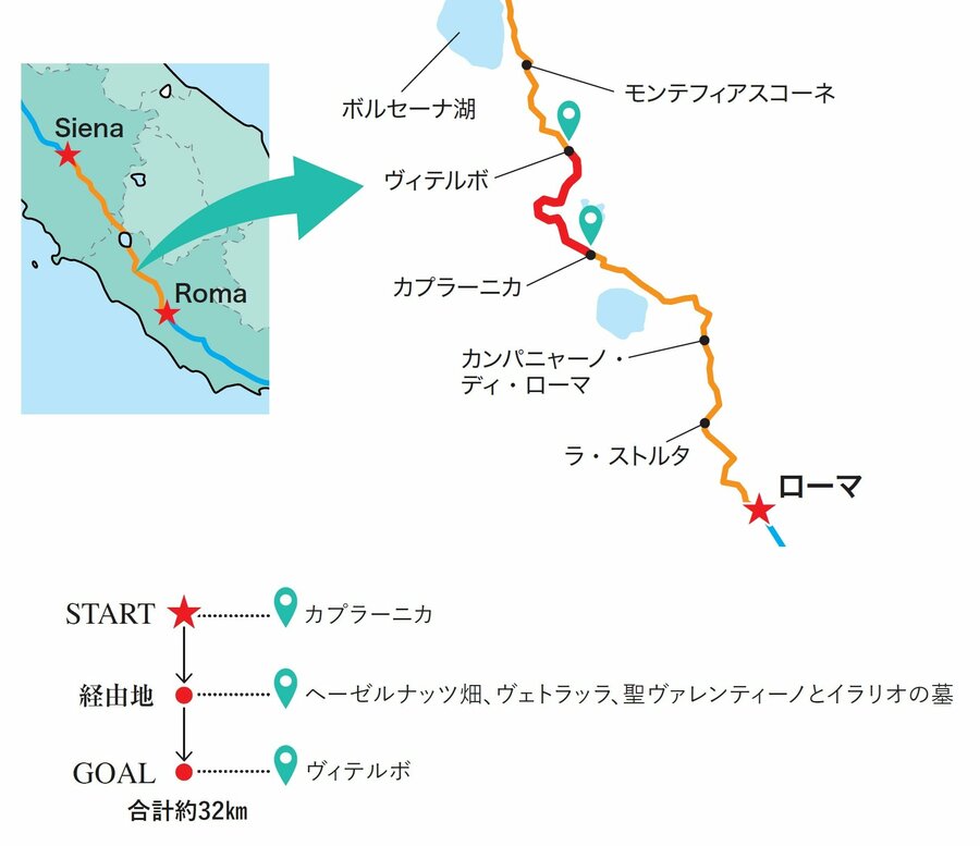 今回は、カプラーニカからトゥーシア地方の中心ヴィテルボを目指すコースである。