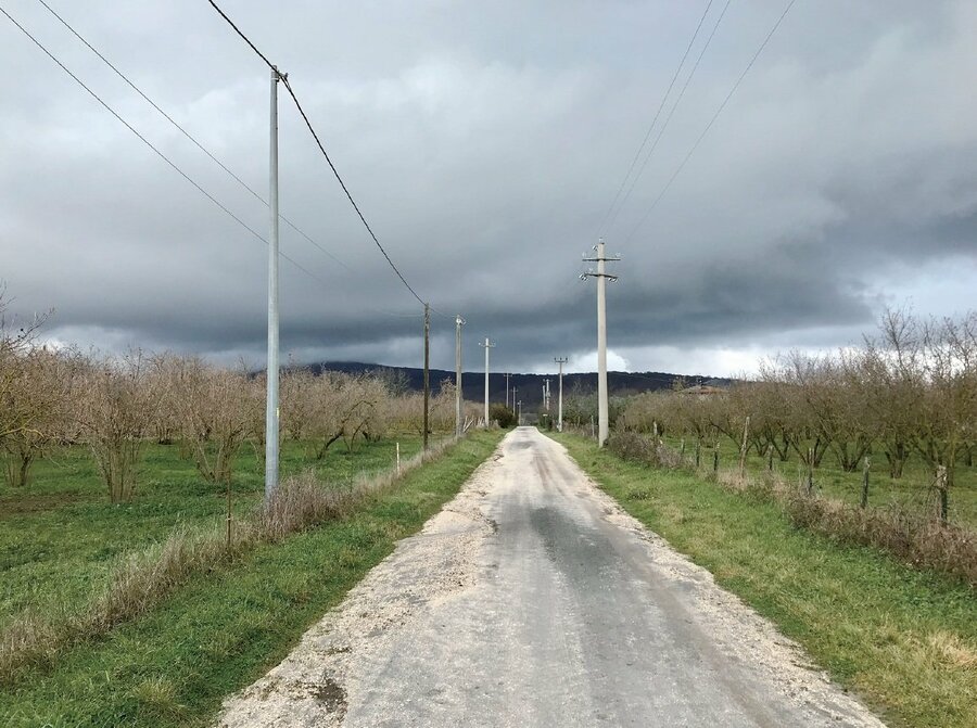 周囲にはこの地域の特産であるヘーゼルナッツ畑が一面に広がっている。