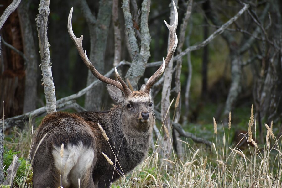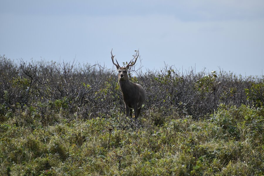 最後に、丘の上に立ち此方を見ている雄のエゾシカを見つけた。私は彼に「ありがとう」と「さよなら」を言い、野付半島を後にした。