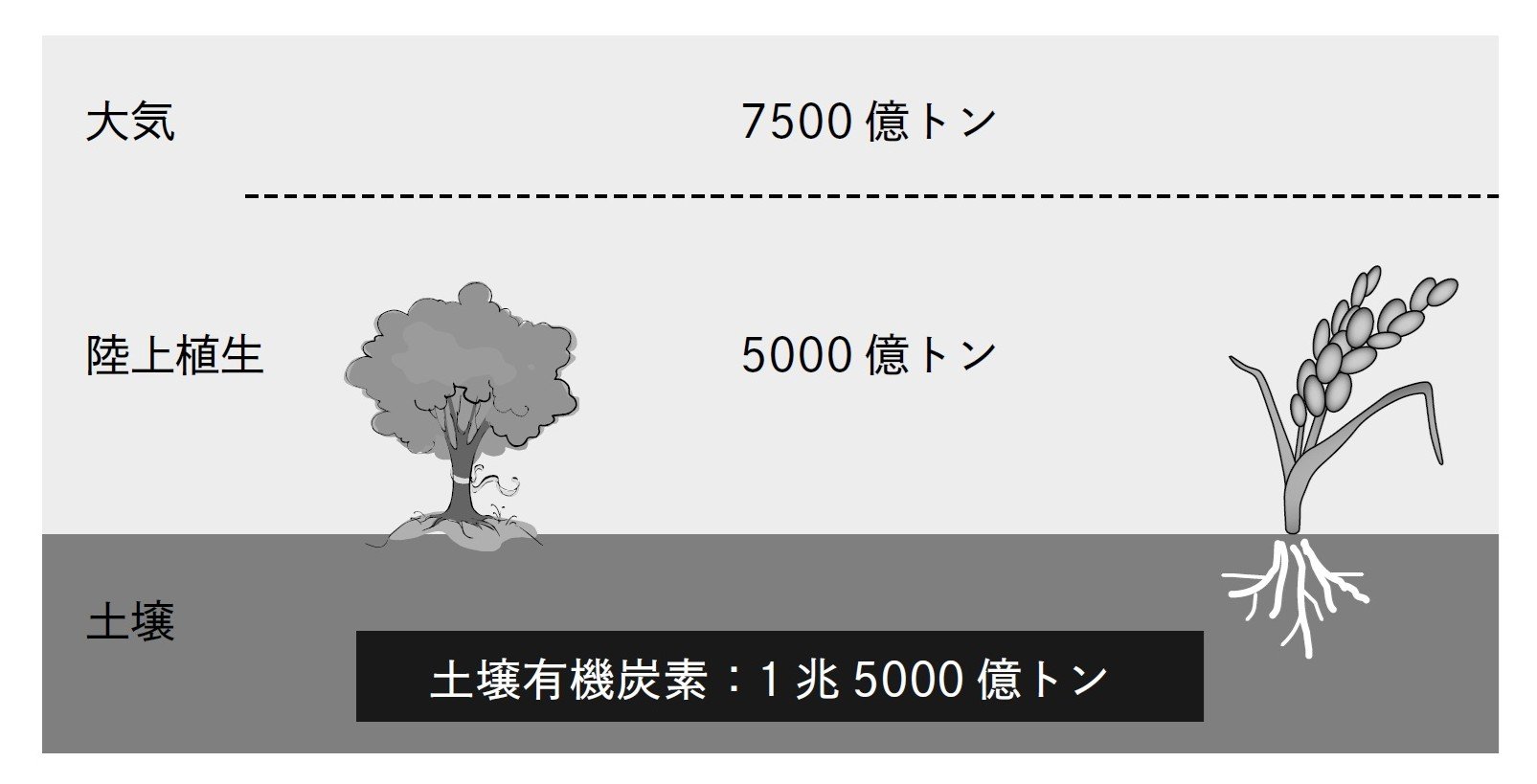 土壌炭素は土壌中の微生物により分解され、二酸化炭素(CO2)となって大気中に放出される。