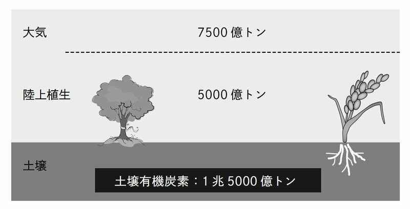 土壌のCO2吸収量は1兆5000億トンもあり、大気の2倍、陸上植生の3倍である(参照:図1-6「土壌のCO2吸収量」)。