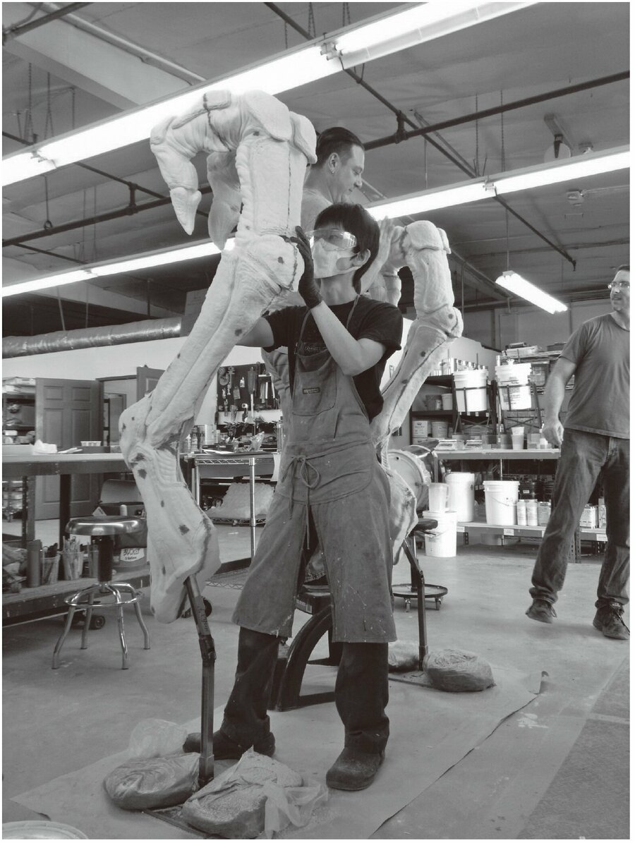 その上から、私を含め、アーティストたちの手作業でエイリアンのゴツゴツした甲殻類のような皮膚の質感を掘り込み、内部には「アニマトロニクス」と呼ばれる機械仕掛けの骨組みが組み込まれ、ラジコンで動かすことが可能でした。