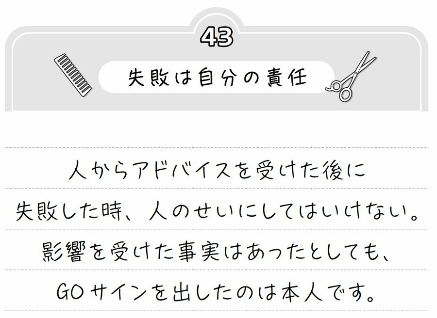 成功したら自分の手柄、失敗したら人のせい。そういうことでだんだん恩知らずな人間が出来上がります。すると誰もあなたにアドバイスしてくれなくなります、あなたの人生の大きな損失だと思います。とても残念なことです。