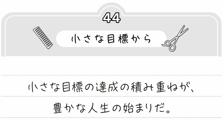 大きな目標を立てると、よっぽど忍耐強くないと達成は難しいが、ほんの些細なことにも喜びを見つけることが出来ると、喜びの連鎖で味気ない人生が楽しく変わります。是非試してみてほしいです。