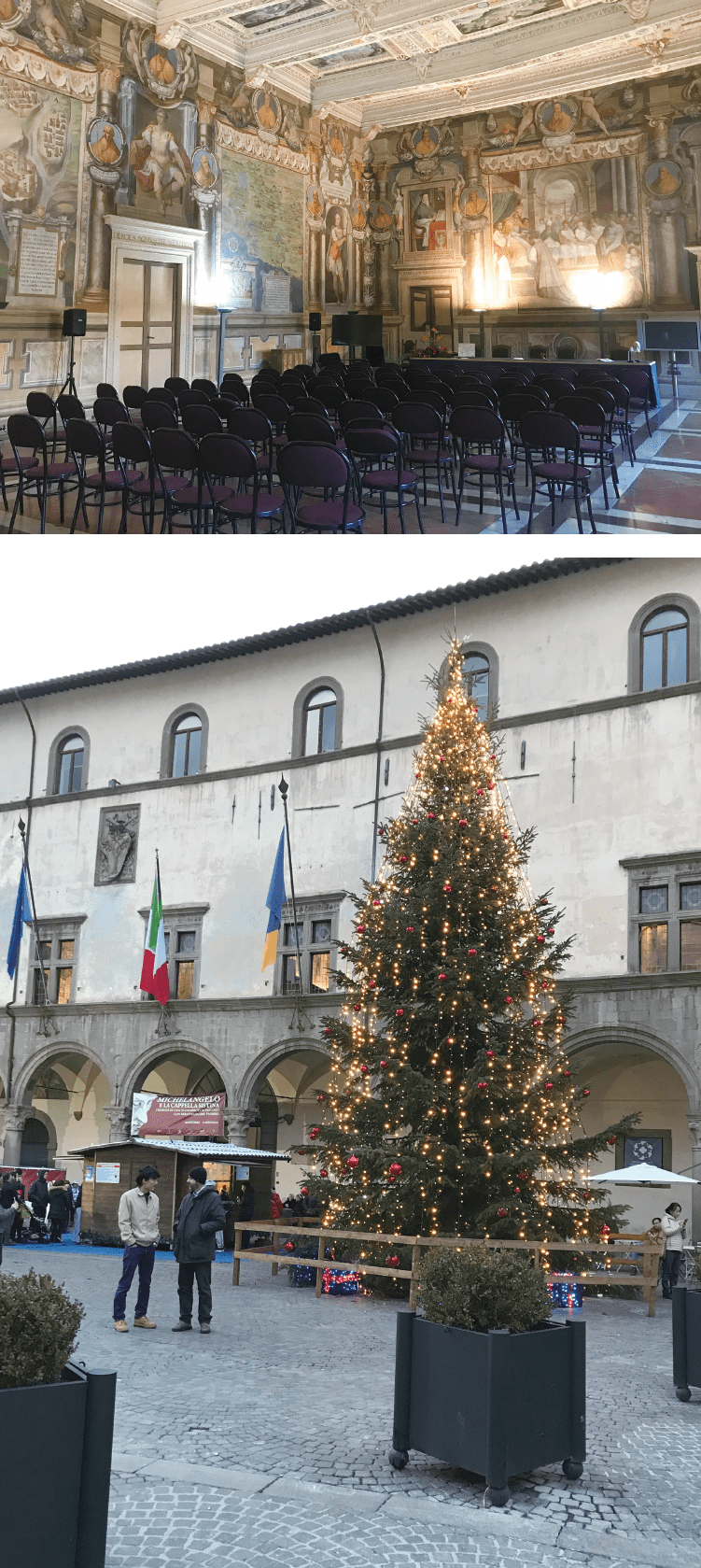 その後は、トゥーシア地方の中心都市として存在感を示し続けた。今も市庁舎として使われているプリオーリ宮「地図の間」の天井には、当時ヴィテルボが支配した33もの城の絵が誇らしげに描かれている。