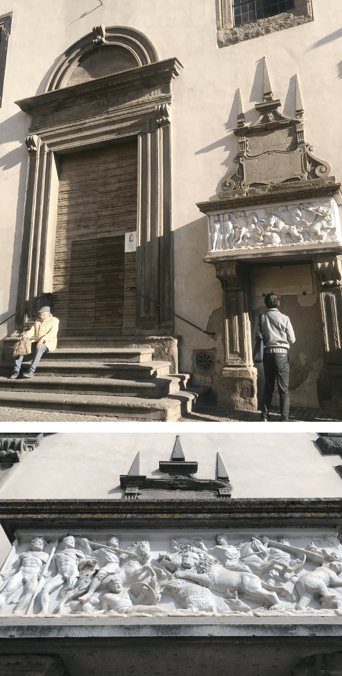市庁舎の向かいにあるサンタンジェロ教会には、ガリアーナという名の美女の墓がファサードに据え付けられている。