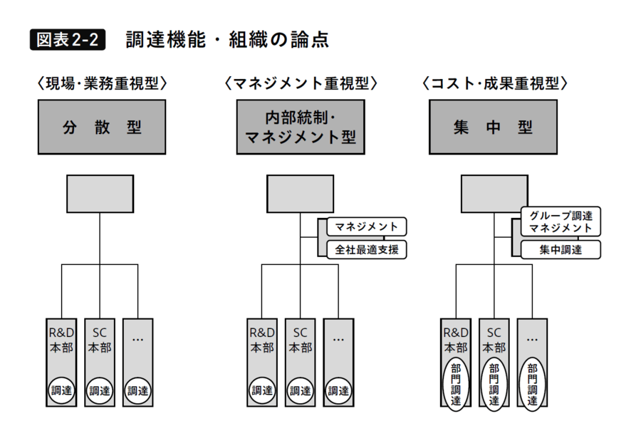 このケースの場合は、コーポレート部門に全社的な調達部署を集中設置し、国内のみならずグローバルレベルでの統制を効かすことが出来ます。