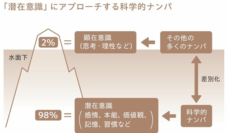 それは他の男性と「差別化」し、相手の「潜在意識」にアプローチをすることです。人の心を動かすうえで最も大きな影響力を持っているのは、私たちが普段意識していない「潜在意識」です。