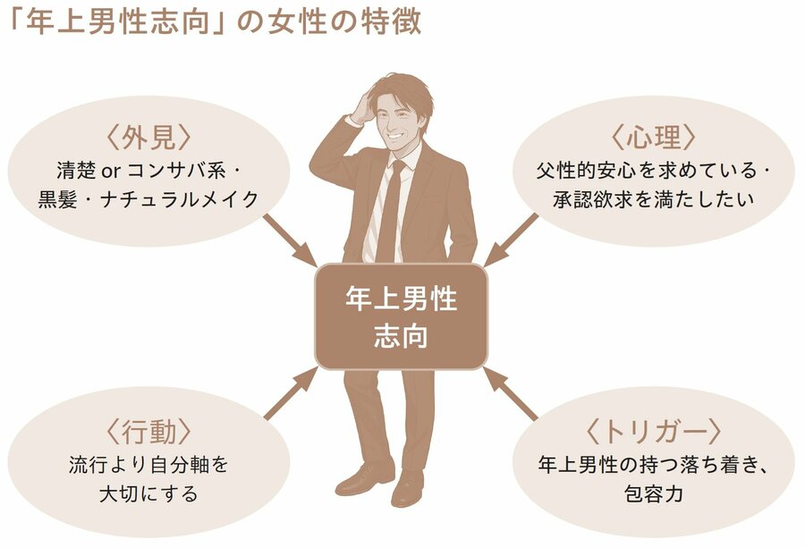 こうしたタイプは、いわゆる「年上男性志向」であり、俗に「おじさん好き女子」とも呼ばれています。彼女たちの特徴を事前に理解しておくことで、より自然にコミュニケーションを取ることができるようになります。