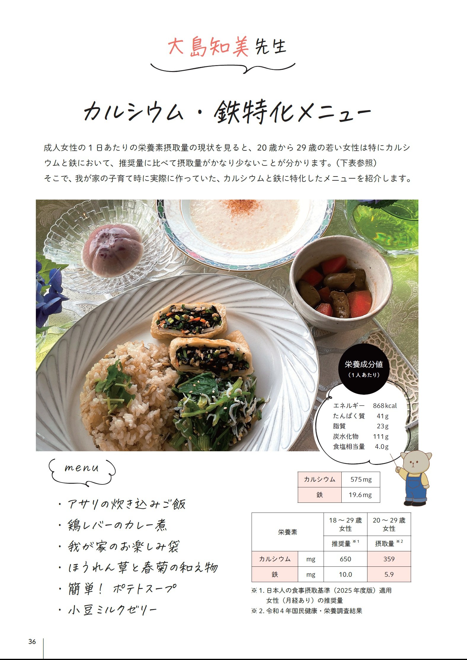 実用 レシピ 料理 食事 ライフスタイル 2026.04.19 【カルシウム/鉄分 特化メニュー】ほうれん草とシラスの和え物、他5品。他栄養専門学校の先生が書くレシピ! 栄養士が伝えたい「おいしいレシピ」 【第8回】 名古屋栄養専門学校 「おいしい」をつくる力が、未来をつくる! この記事の連載一覧 最初 前回の記事へ 卵不使用!なんちゃってとろとろ卵のトマトソースオムライス、和風タンドリーチキン、生鮭のポアレ、ケッパー風味のドレッシング添え、揚げない! 小エビのエスカベッシュ風マリネ etc.※本記事は、名古屋栄養専門学校の書籍『栄養士が伝えたい「おいしいレシピ」』(幻冬舎ルネッサンス)より、一部抜粋・編集したものです。 【前回記事を読む】ほのかな甘さとはちみつ香る、ふんわり手作りパン講座♪ オーツミルクは食物繊維・カルシウムが豊富!(他6品) 調理実習 調理実習Ⅴ 写真を拡大 写真を拡大