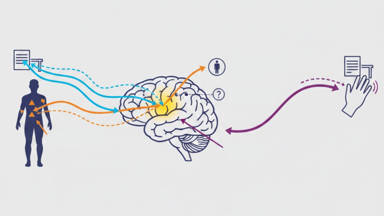 ここで、約500ミリ秒たってからでないと感覚意識が生じないということの理由ですが、おそらくこの約500ミリ秒の間に、その感覚情報が記憶情報(長期記憶)との照合などの処理を受け、この処理過程を経ることで、感覚情報として完成され、その完成された感覚情報が意識化(意識にのぼることを意識化と表現します)されるということではないかと考えています。