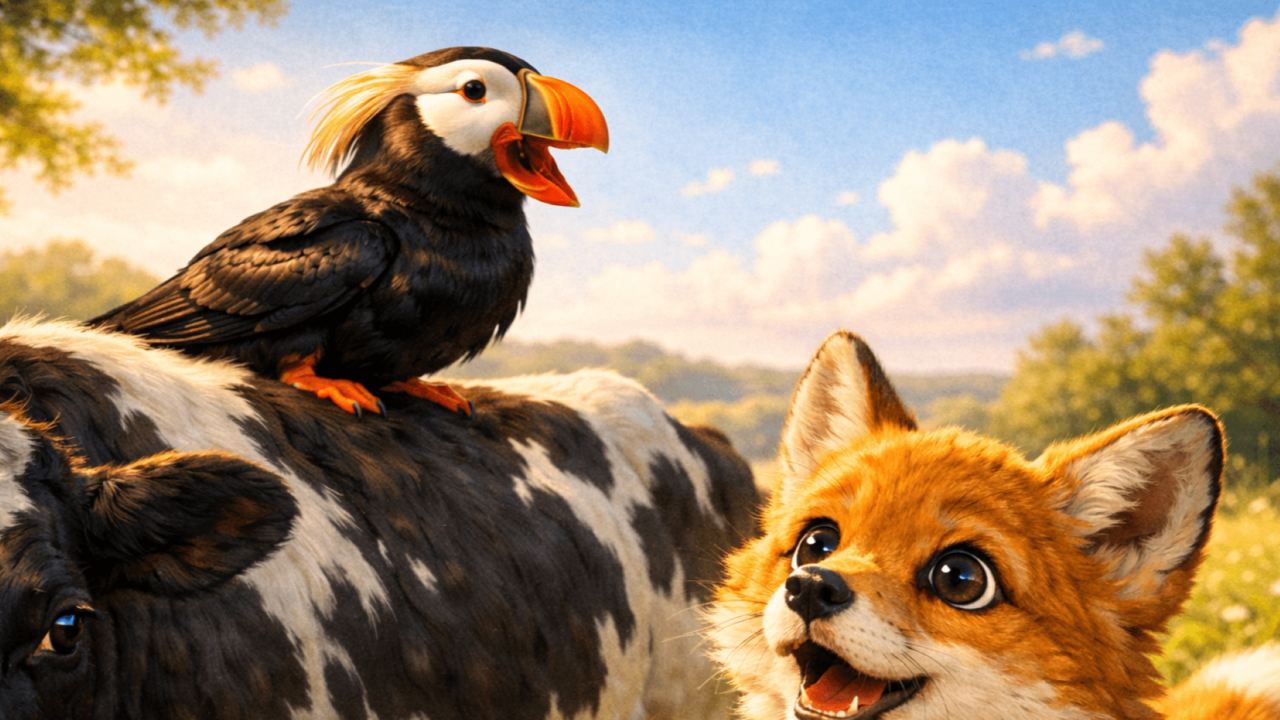 牛の背中で話す色鮮やかな鳥…旅するキタキツネの子供が出会った“オイラン姉さん”とは