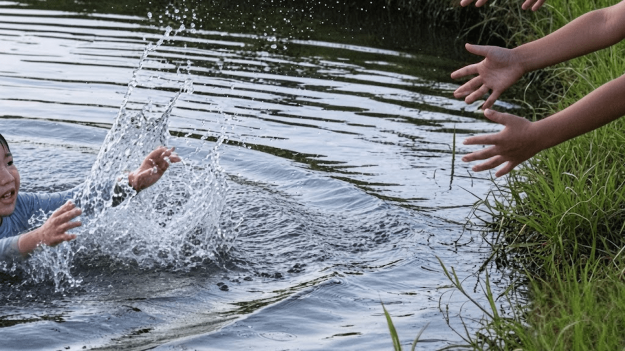 ハンドル操作を誤ったのか、子どもが坂の上から池に落下。溺れながら悲鳴を上げ、手足を必死に動かしていたが……