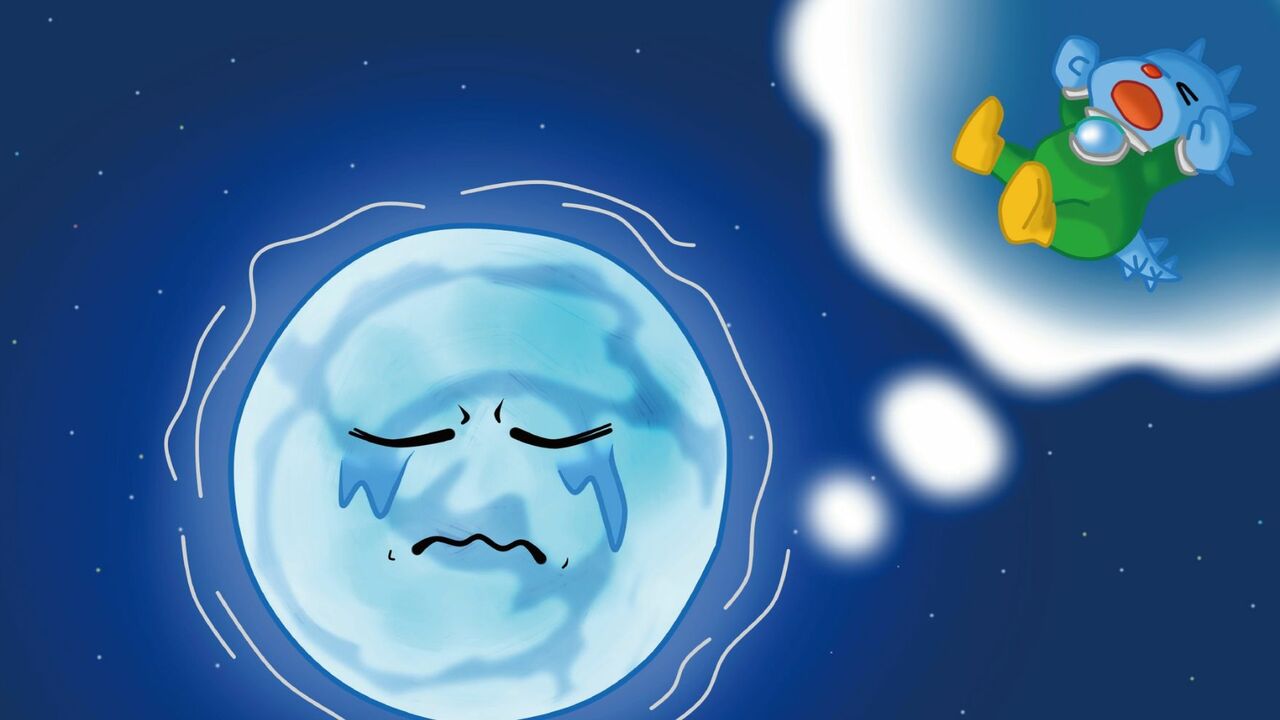 【絵本】火の玉がぶつかったあと、地球さんはまわりを見てビックリしました。大好きな恐竜さんたちが、どこにもいません。